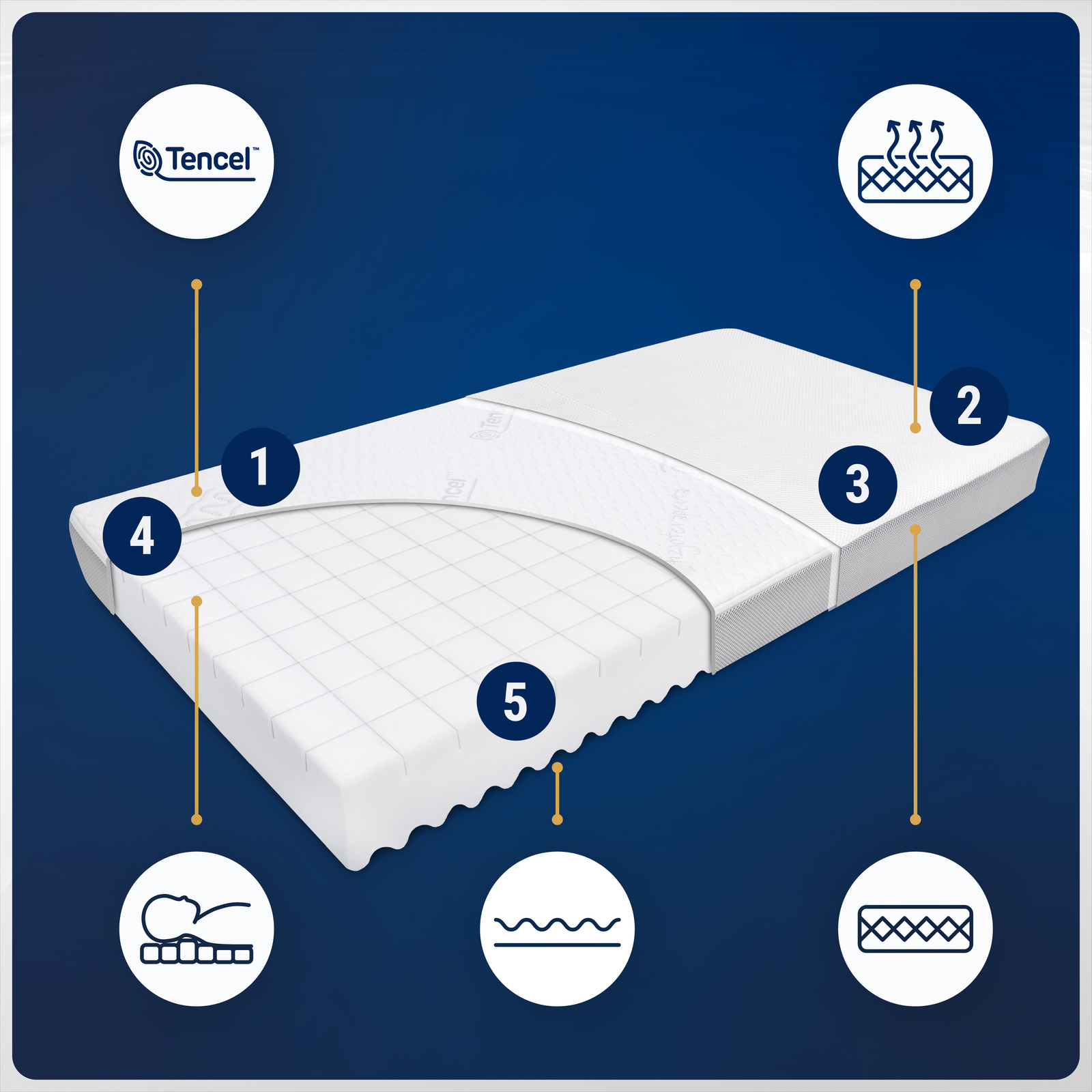 5️⃣ Oddychająca struktura: System Air Max zapewnia głębszy sen i redukuje przegrzanie.