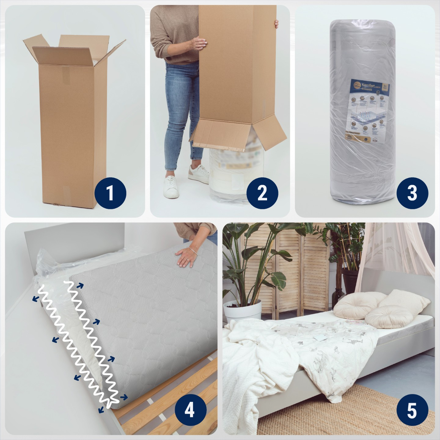 ▶️ Bez wpływu na jakość - dzięki zastosowaniu wysokiej jakości pianki, sposób pakowania w żaden sposób nie obniża trwałości ani właściwości materaca. Po rozpakowaniu materac należy rozłożyć i pozostawić do pełnego rozprężenia – proces ten trwa do 72 godzin.