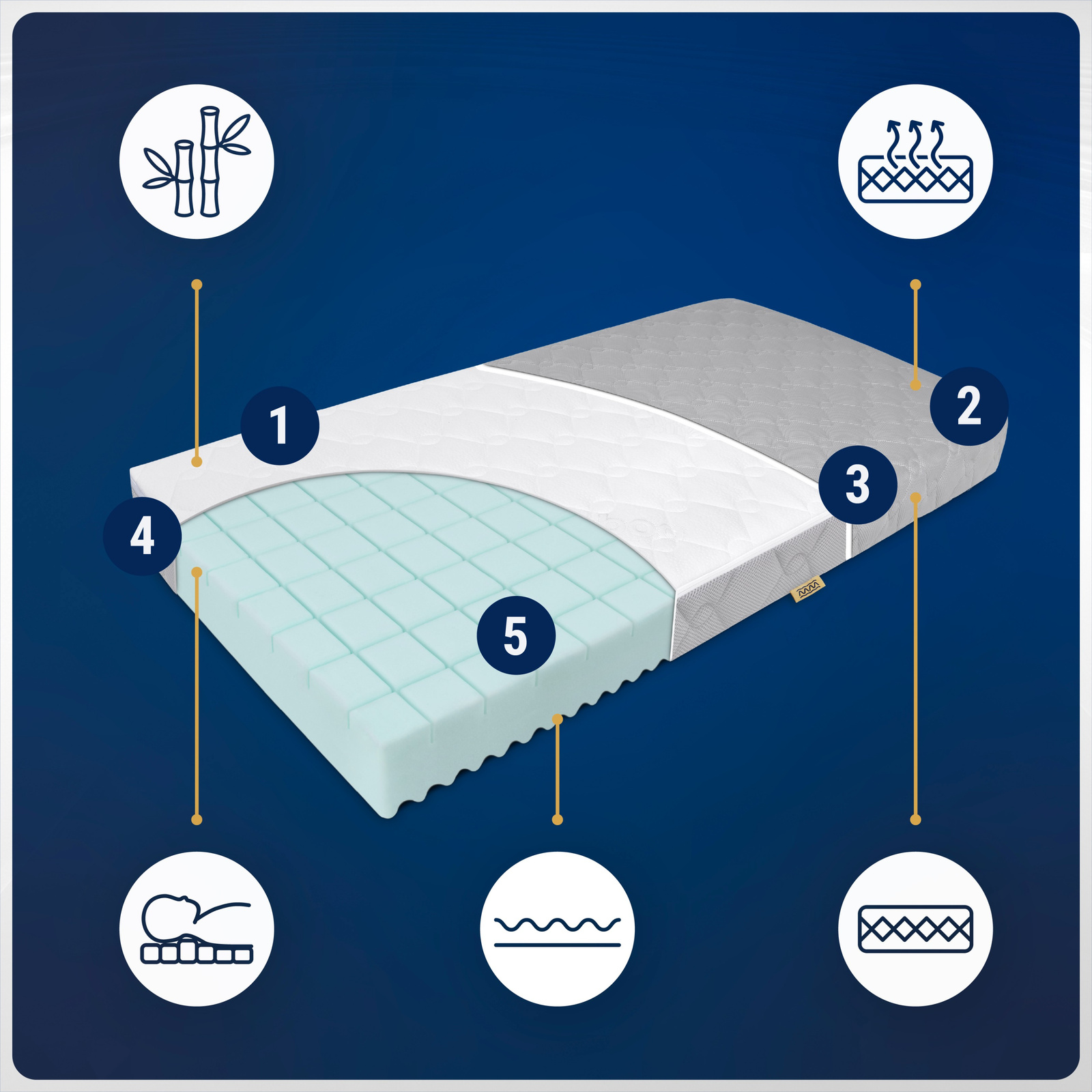 5️⃣ Oddychająca struktura: System Air Max zapewnia głębszy sen i redukuje przegrzanie.