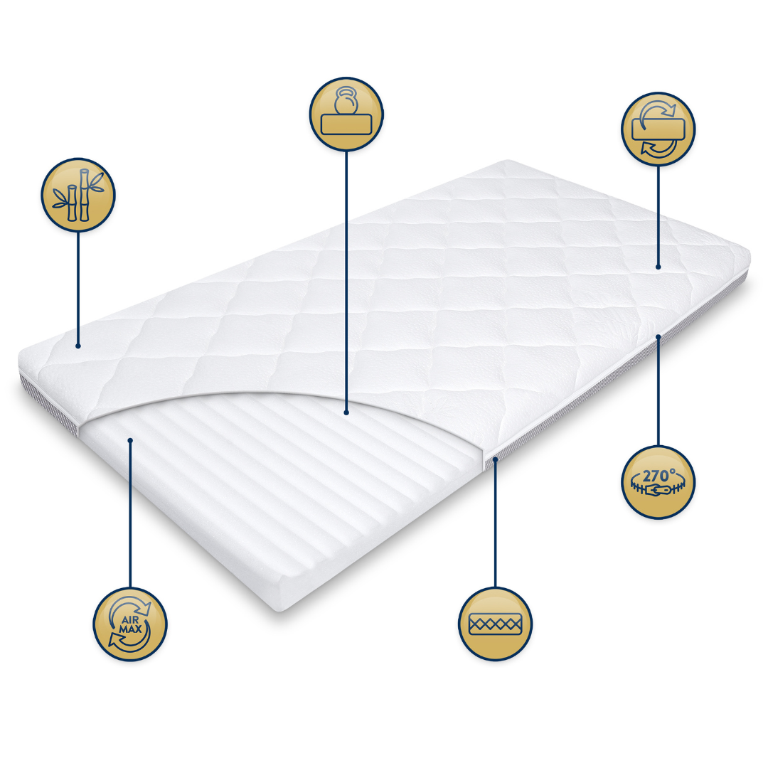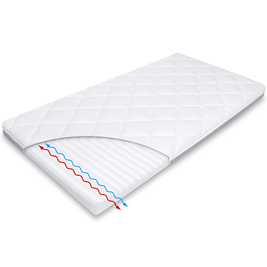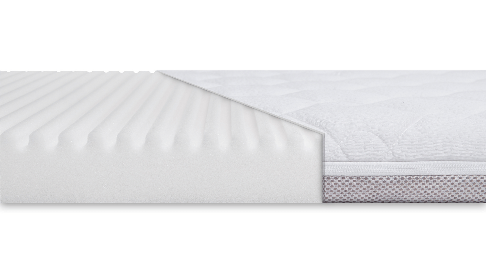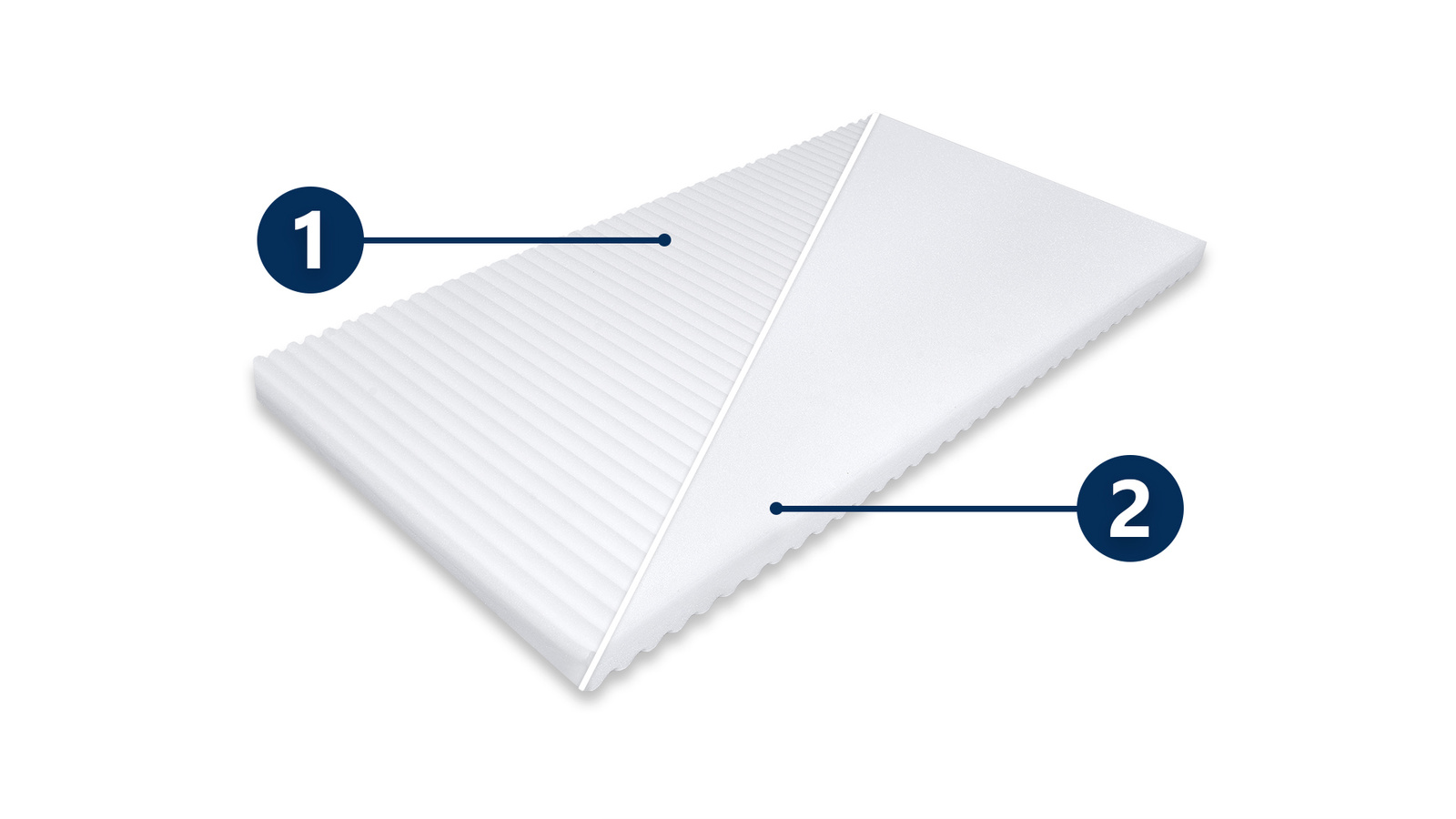 1️⃣Profil fali wycięty na piance z jednej strony materaca zmiękcza go do twardości H2 (średnio-twardy) i poprawia wentylację zapewniając mniej potu użytkownikowi
