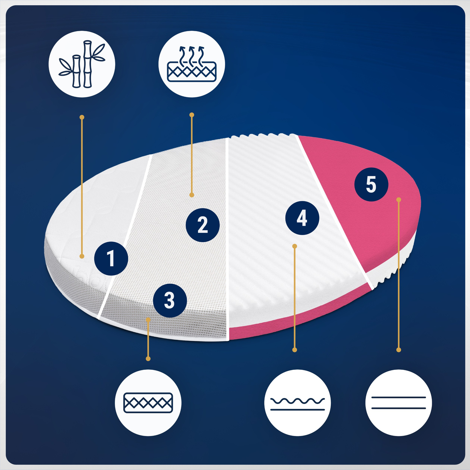 ✅ Twój maluch oddycha czystszym powietrzem, bo materac skutecznie eliminuje wilgoć, bakterie i roztocza