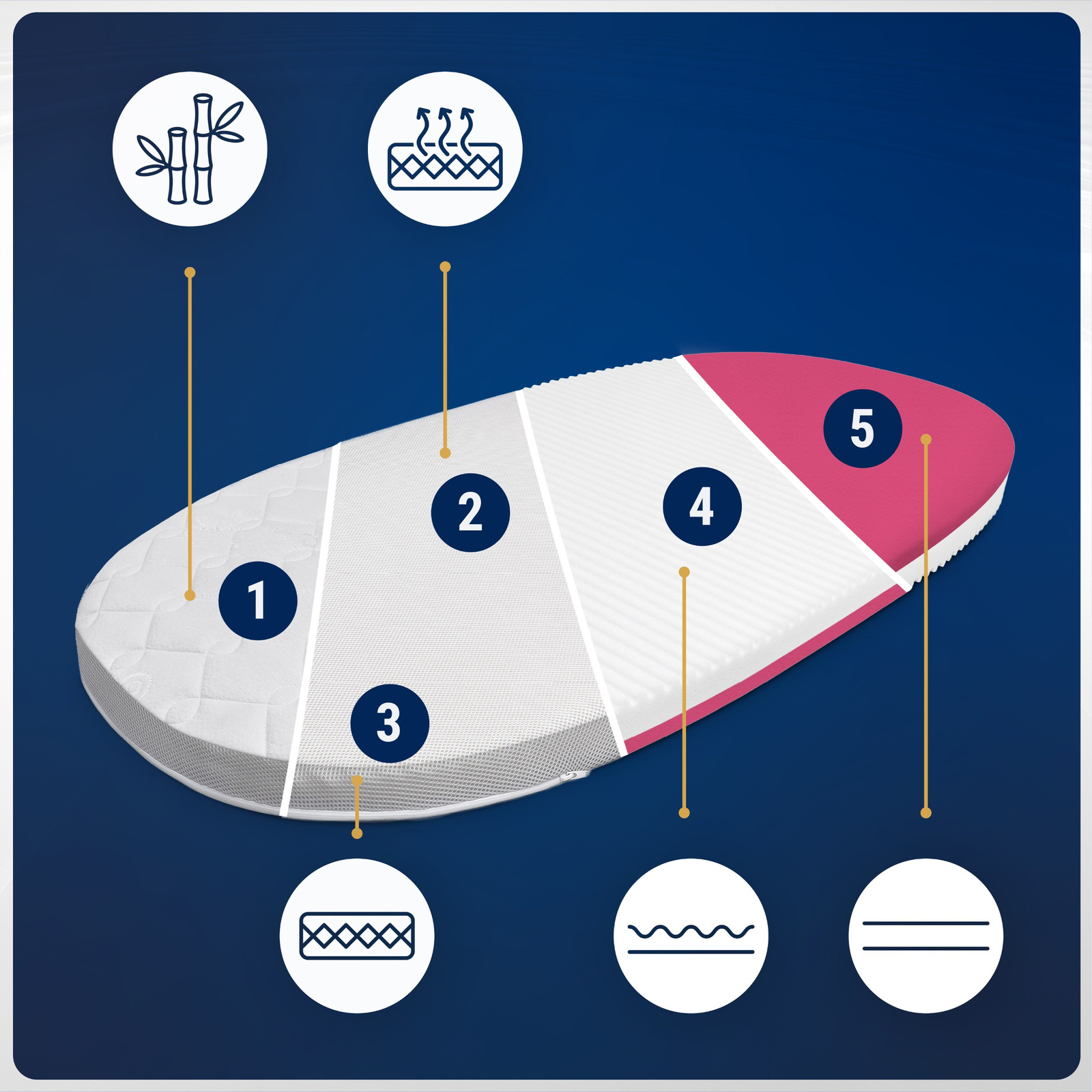 ✅ Twój maluch oddycha czystszym powietrzem, bo materac skutecznie eliminuje wilgoć, bakterie i roztocza