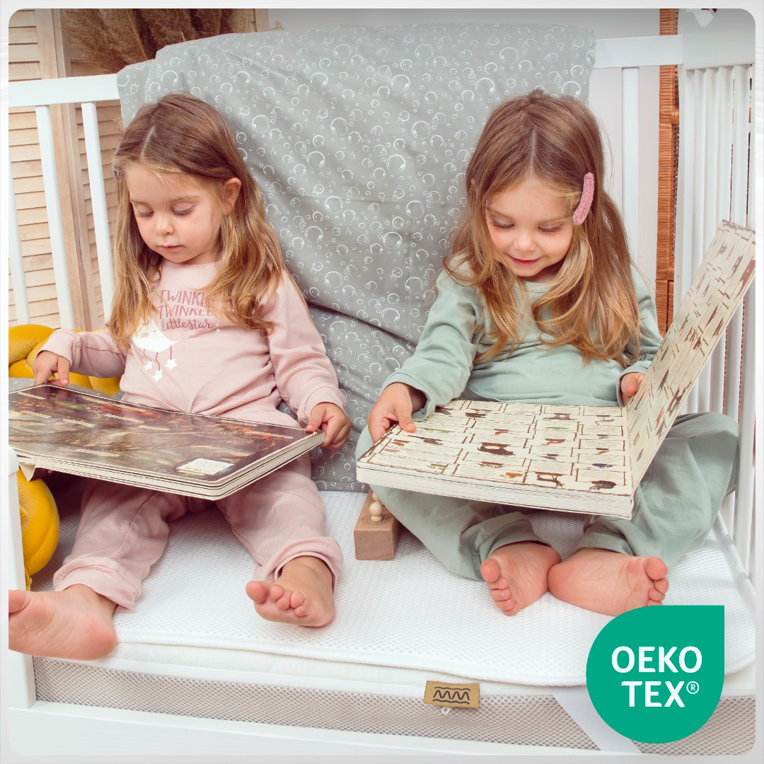 ✅ Dodaj oddychające prześcieradło – razem z ochraniaczem zapewni optymalną wentylację i komfort snu.