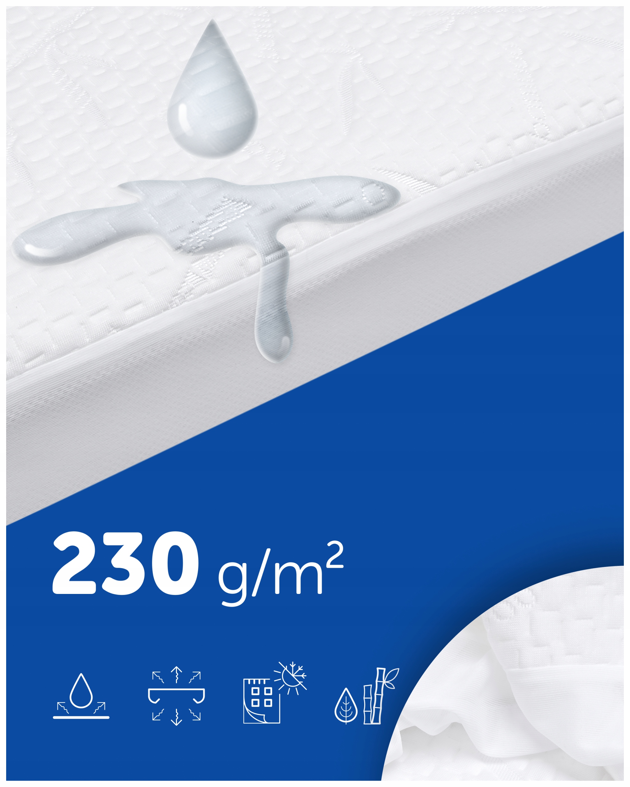 Gładka dzianina bambusowa o gramaturze 230 g/m² zapewnia wyjątkową miękkość i komfort snu.