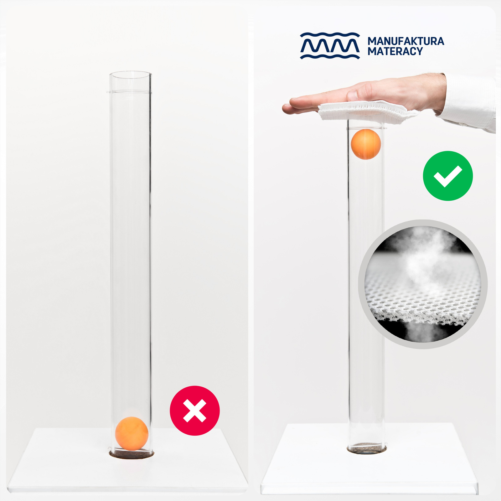1️⃣ Standardowy ochraniacz: piłeczka opada = brak przepływu powietrza