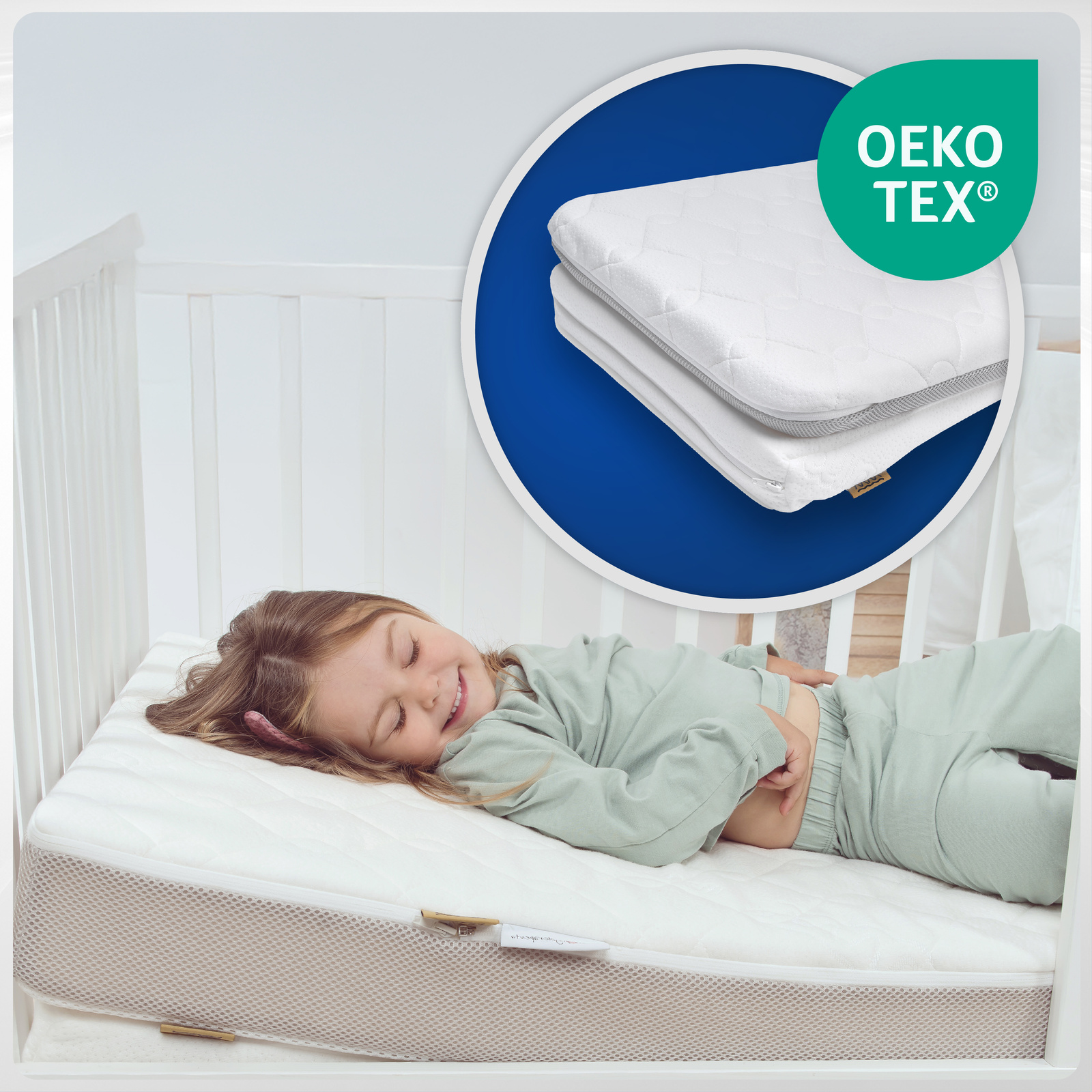 ✔️ Klin unosi górną część ciała dziecka o kilka centymetrów, tworząc optymalny kąt nachylenia materaca.