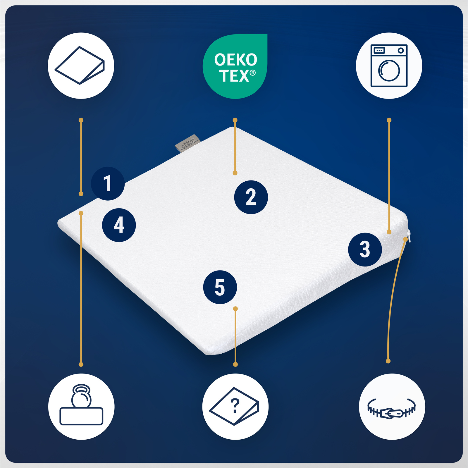 Wszystkie komponenty – zarówno pianka, jak i pokrowiec – spełniają rygorystyczne normy jakości i są regularnie kontrolowane.