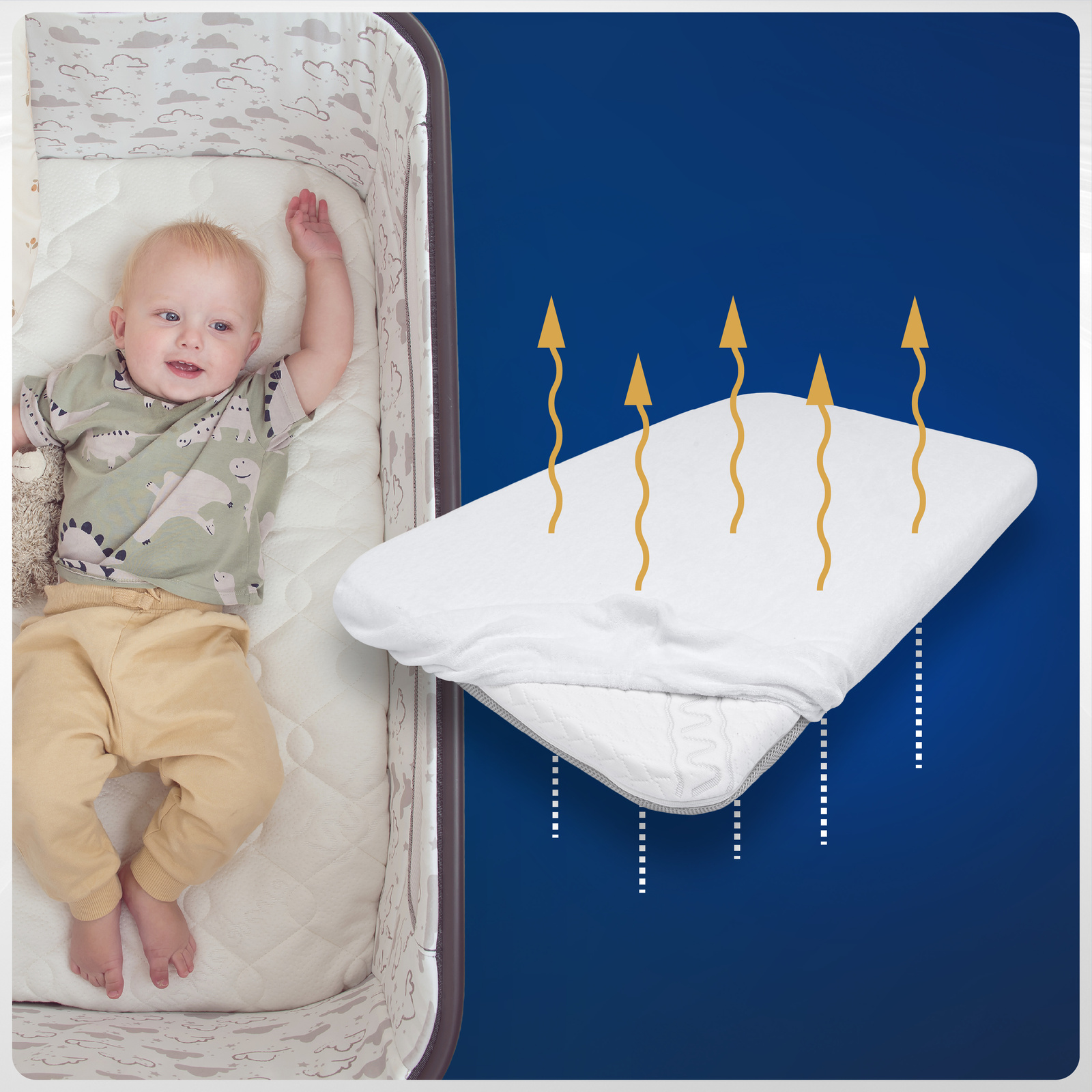 Dobrze dopasowuje się nawet do materacyków o nietypowej grubości – to praktyczne rozwiązanie dla różnych modeli materacy do dostawek, kołysek i łóżeczek turystycznych.