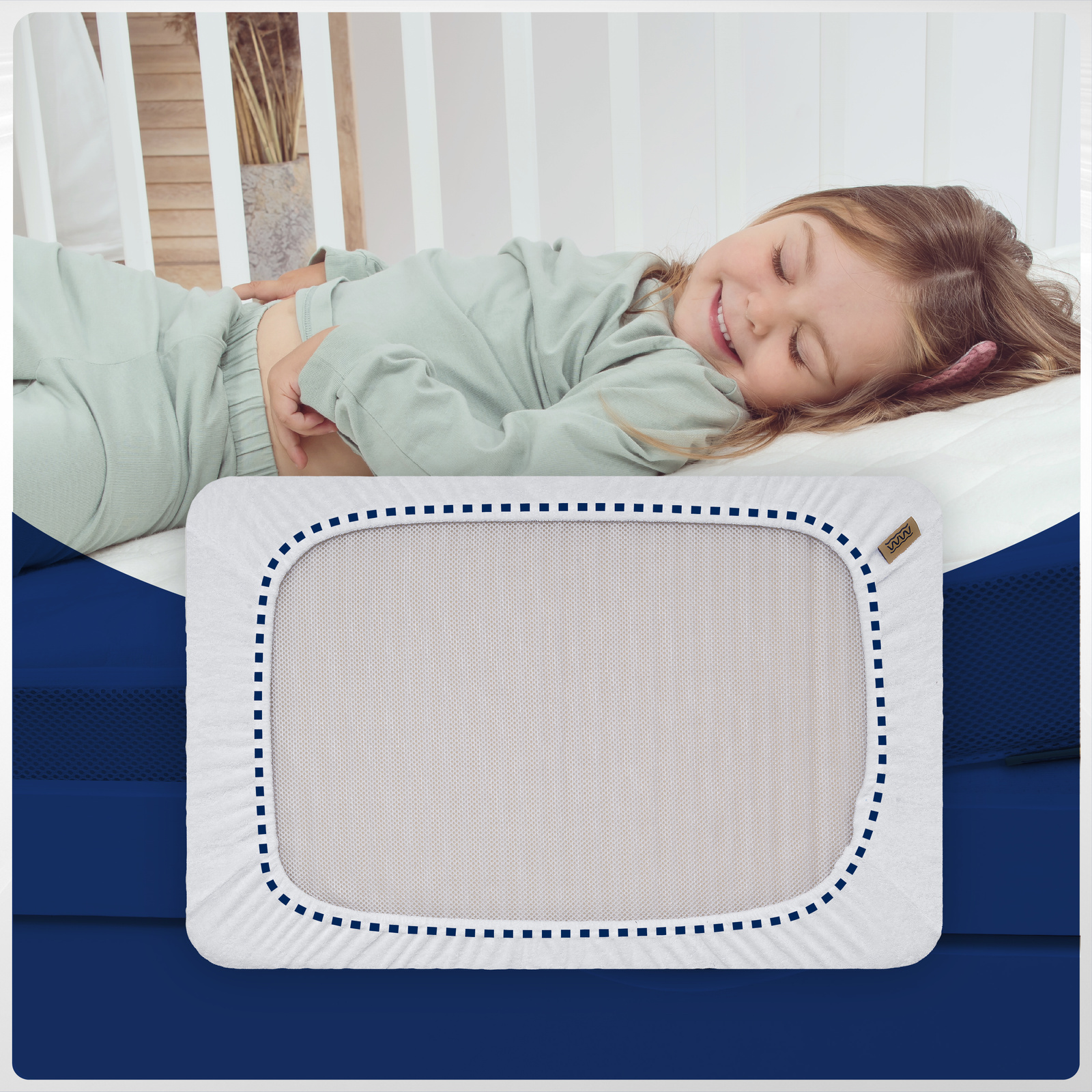 3️⃣ Oddychająca dzianina bawełniana – nie zaburza wentylacji materaca, wspiera cyrkulację powietrza i pozwala skórze dziecka swobodnie oddychać przez całą noc.