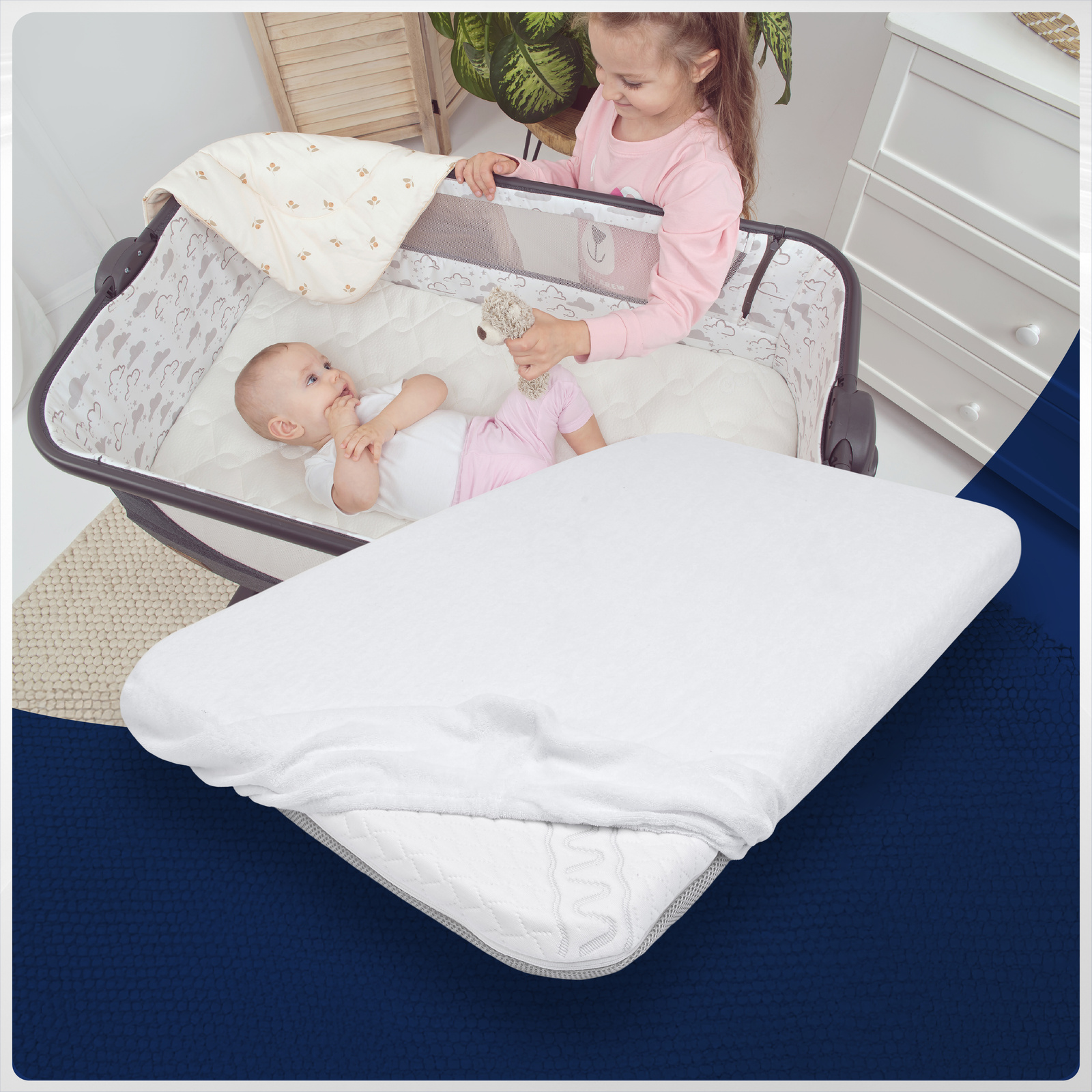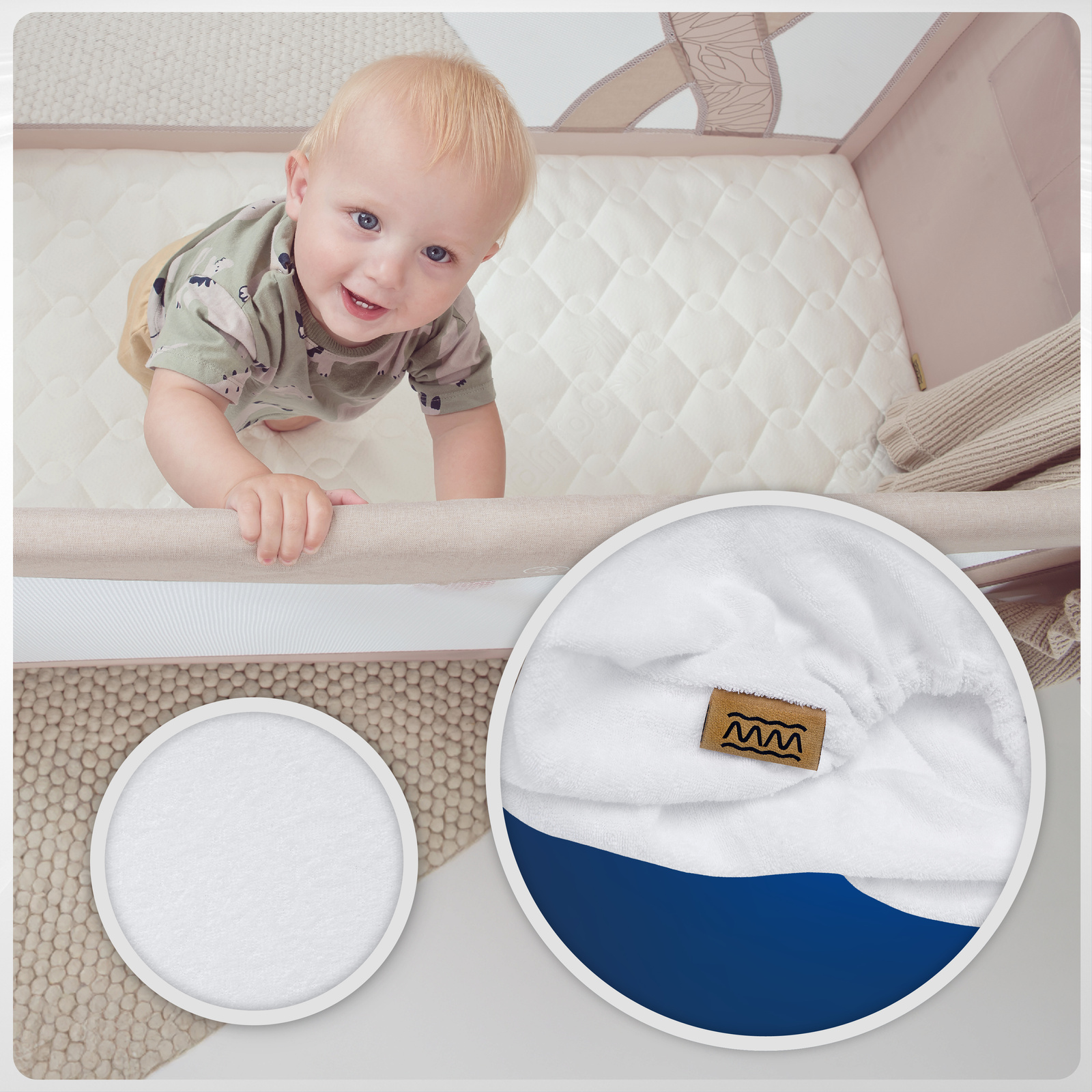 Dobrze dopasowuje się nawet do materacyków o nietypowej grubości – to praktyczne rozwiązanie dla różnych modeli materacy do dostawek, kołysek i łóżeczek turystycznych.